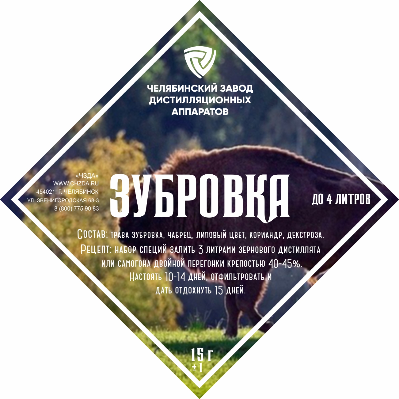 Composition: The set of herbs and spices "Zubrovka" includes: zubovka, thyme, lime blossom, coriander, dextrose Recipe Ingredients from the packaging, pour 1 liter of double distilled liquor or alcohol with a strength of 70%. Stir an..